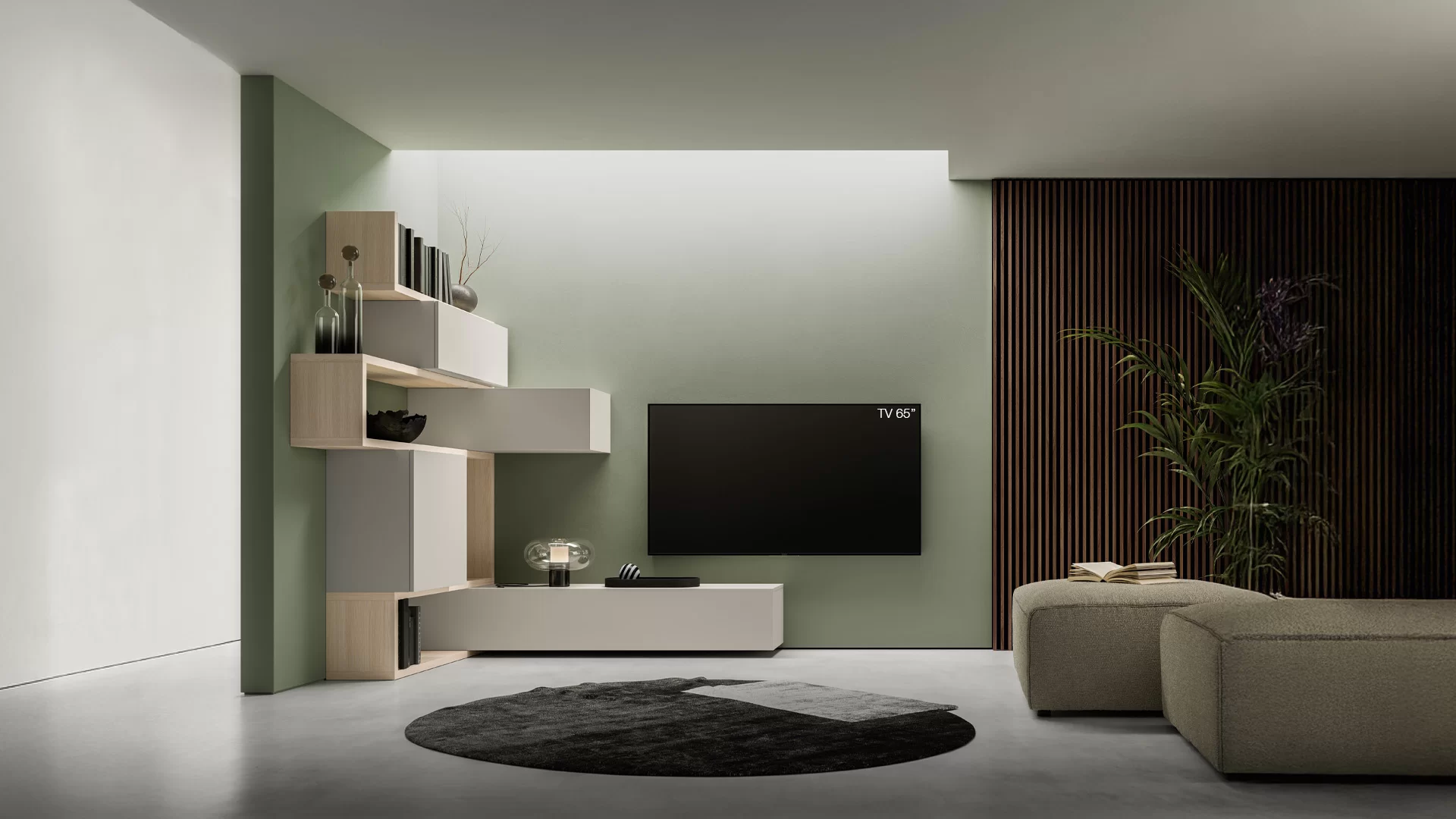 Nel progetto di una zona giorno, ad esempio, la disposizione dei mobili ad angolo ha permesso di sfruttare due pareti per inserire moduli contenitori, elementi libreria e superfici utili, senza appesantire lo spazio.