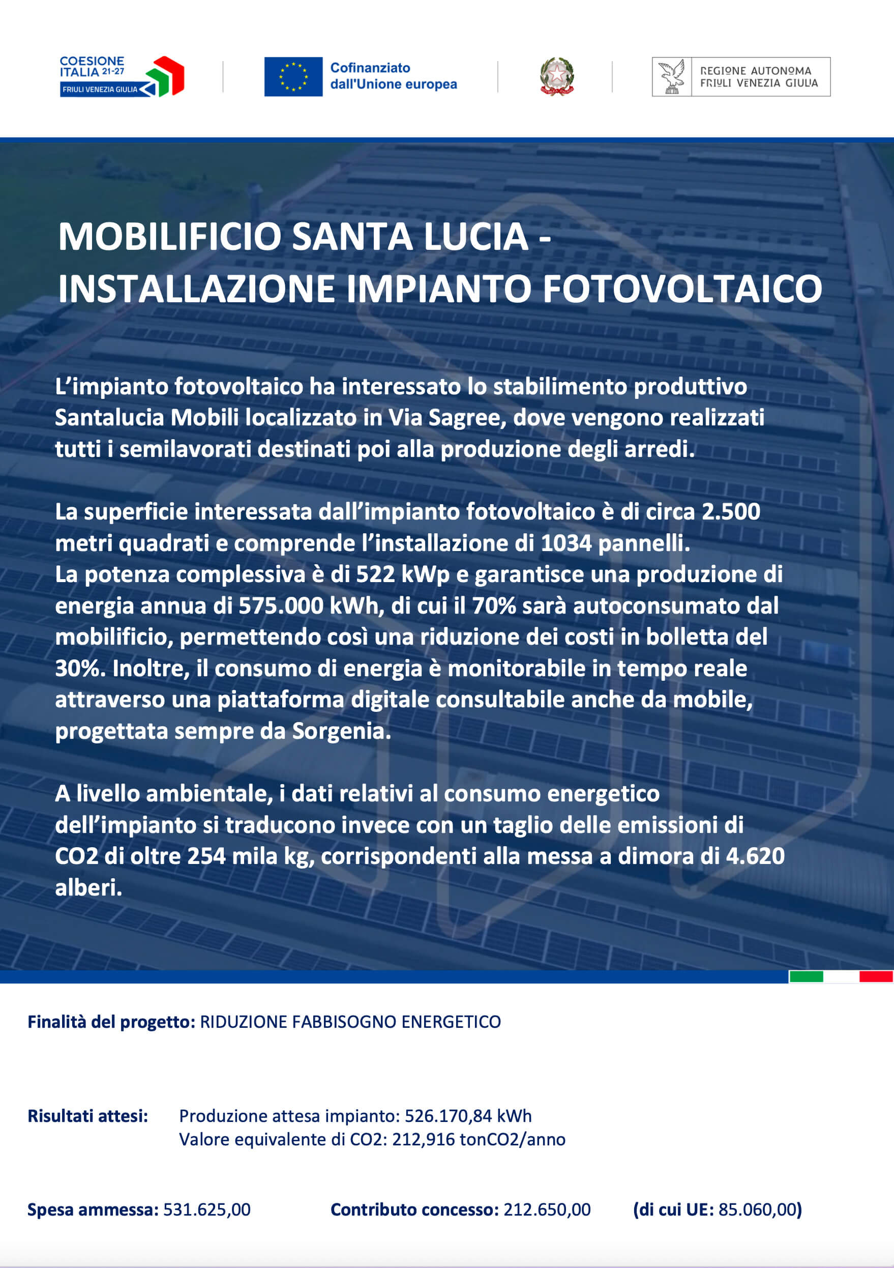 Santalucia Mobili took part in the 2014-2020 ERDF ROP for the Friuli Venezia Giulia region. The funding obtained will bring technological innovation and continuous improvement to the company.