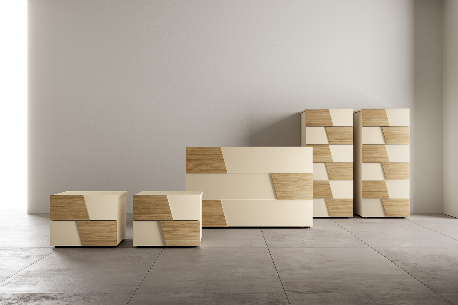 based on the combination of contrasting finishes: a smooth and a matt surface,