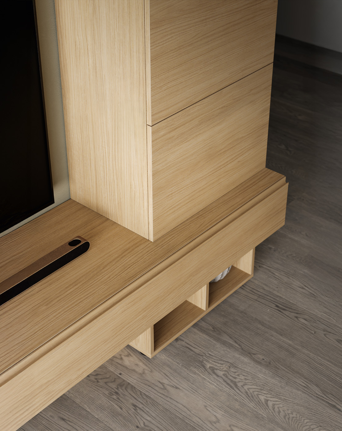 The modules intersect in a mix and match of volumes and depths,while the groove opening guarantees a practical grip.