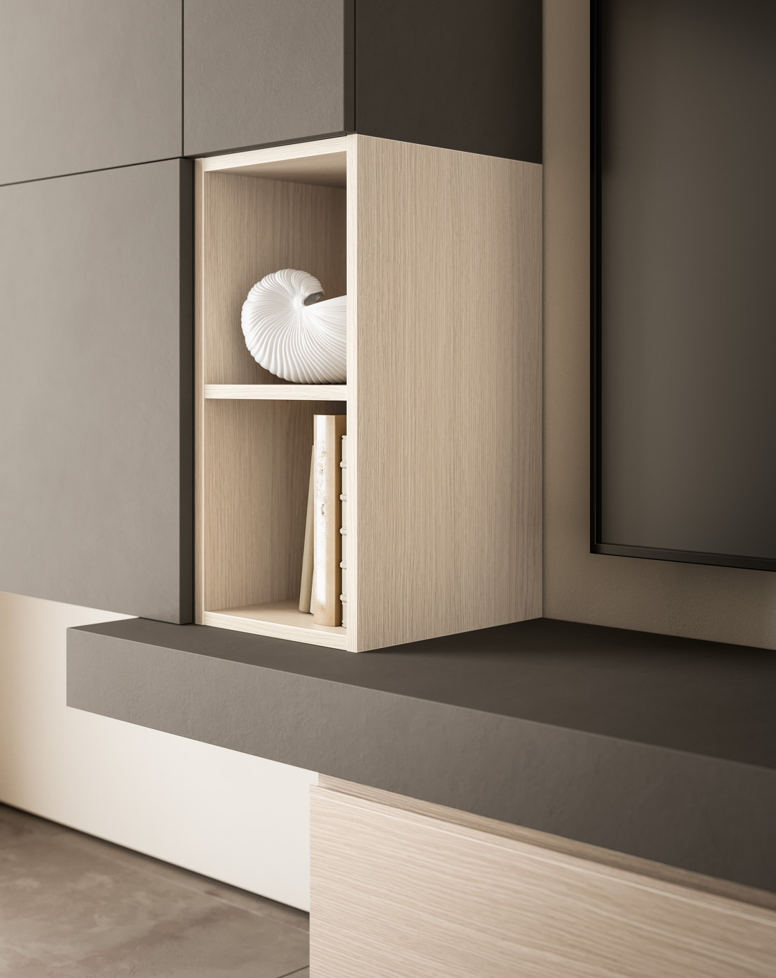 The different depths and the groove handle highlightthe volumes and practicality of the elements.