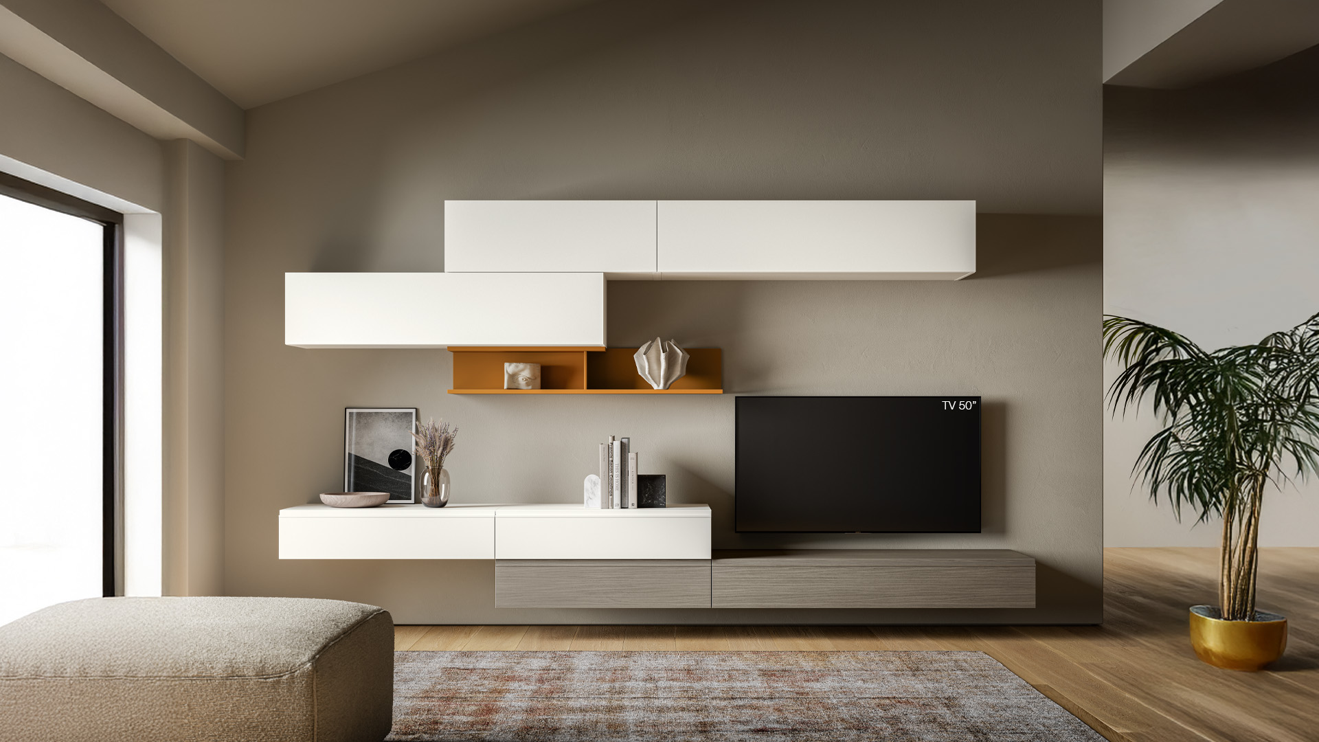 Imagine the walls of the living room were a canvas on which you could design your style. Create the layout and add hints of colour and original forms, like the Half unit. A design that fills the living area with dynamism and character.