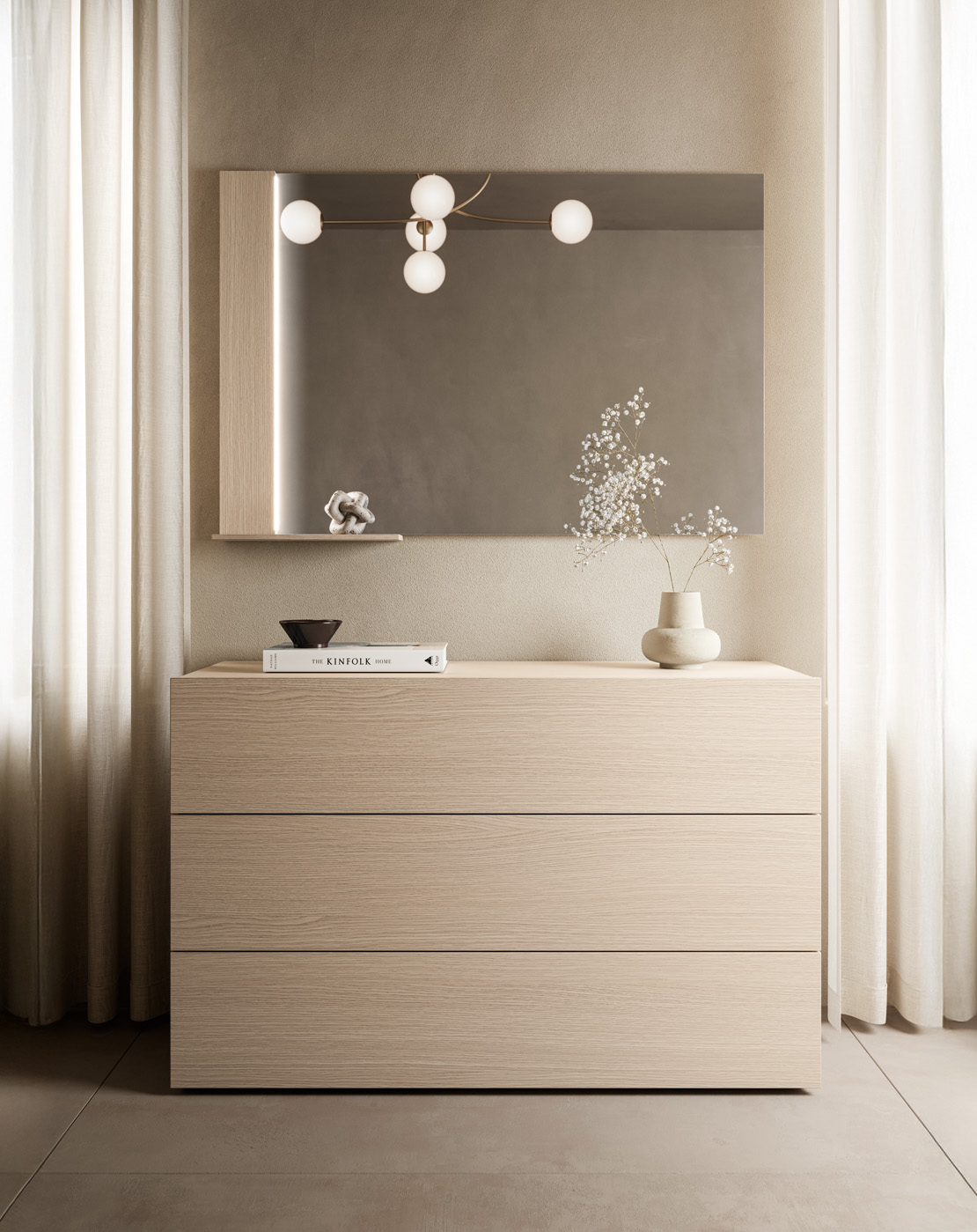 A modern treasure chest designed to furnish your bedroom space: the three-drawer