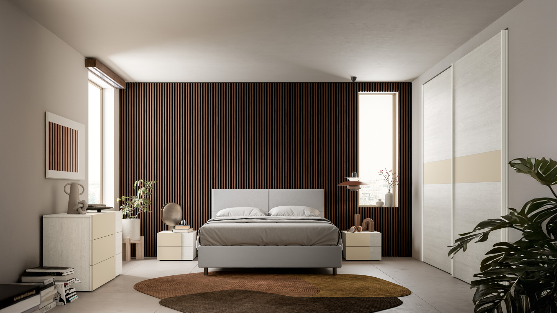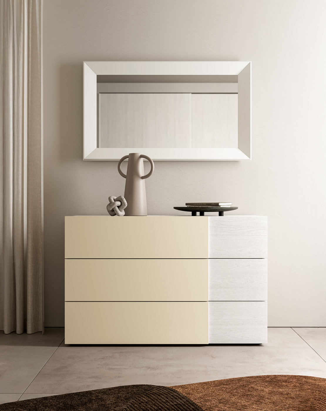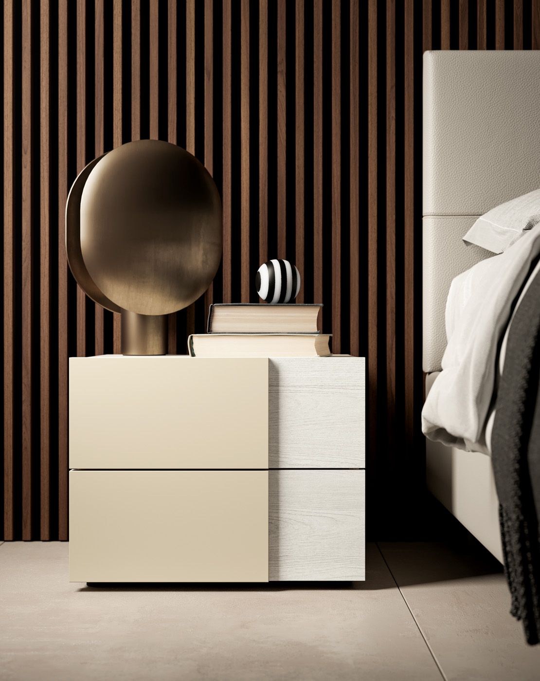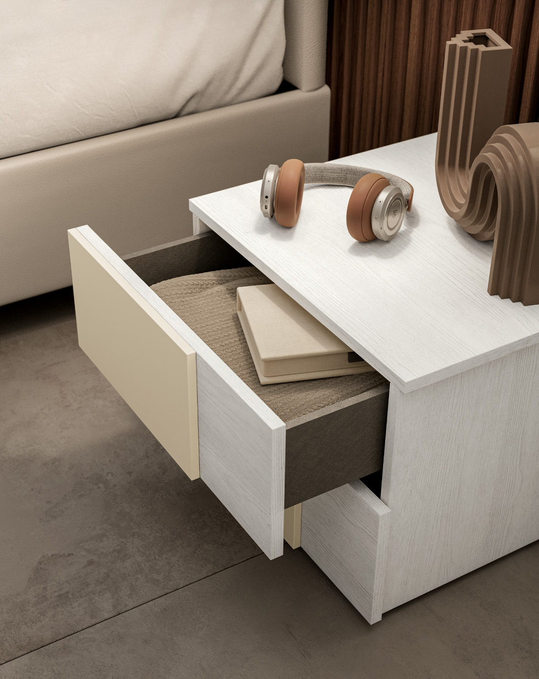 The combination of two refined finishes like Avorio and Matwood Whitecreates an elegant contrast that enriches the design, making every piece versatileand suitable for different styles of decor.
