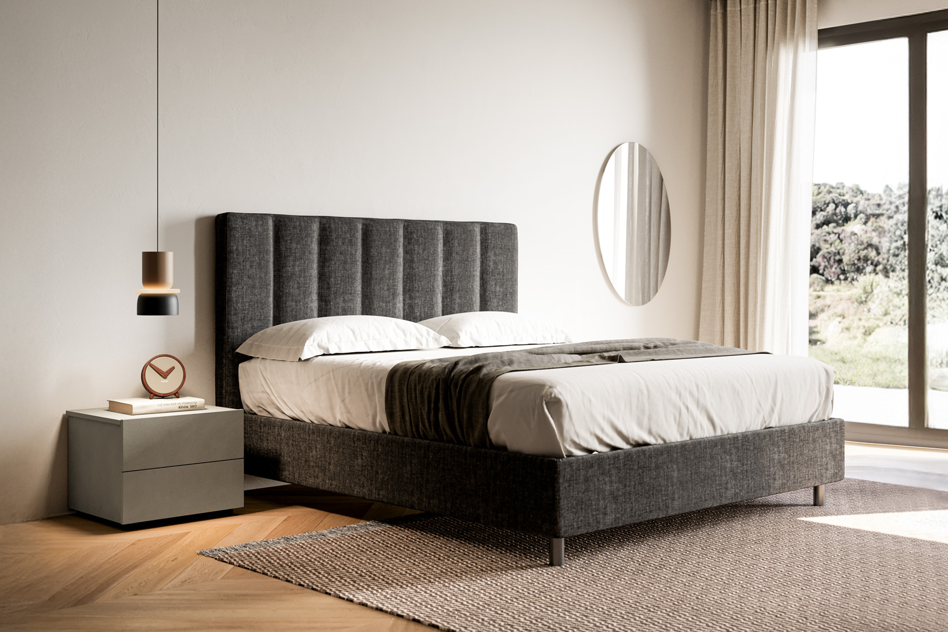 Imposing and visually soft and dynamic. The verticality of its upholstered