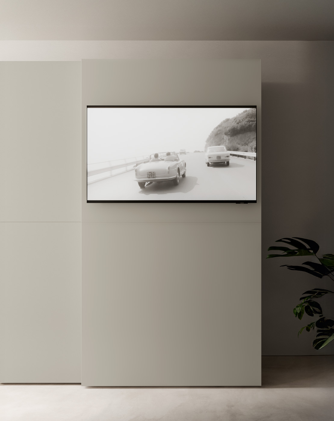 The TV is built into the front of the wardrobe’s sliding door,optimising the space. The ideal solution for those that love watchingtelevision in the bedroom.