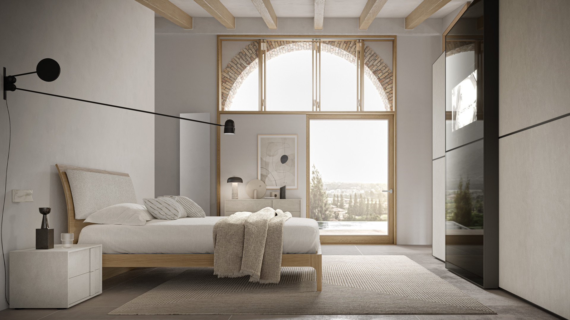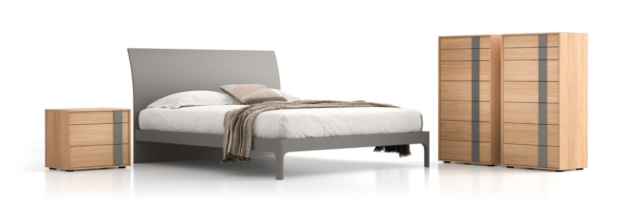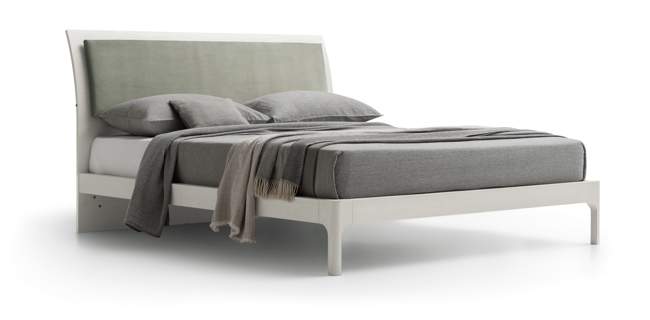 The Parentesi bed, shown here with a smooth, solid-color finish,