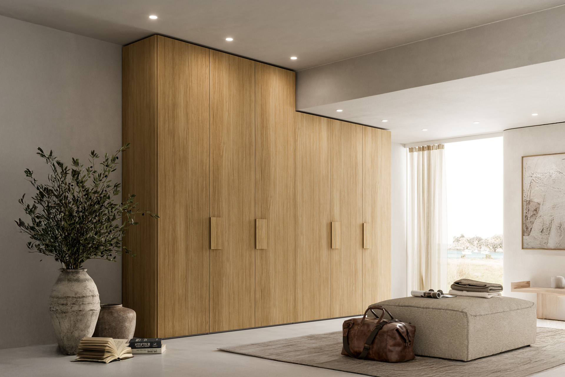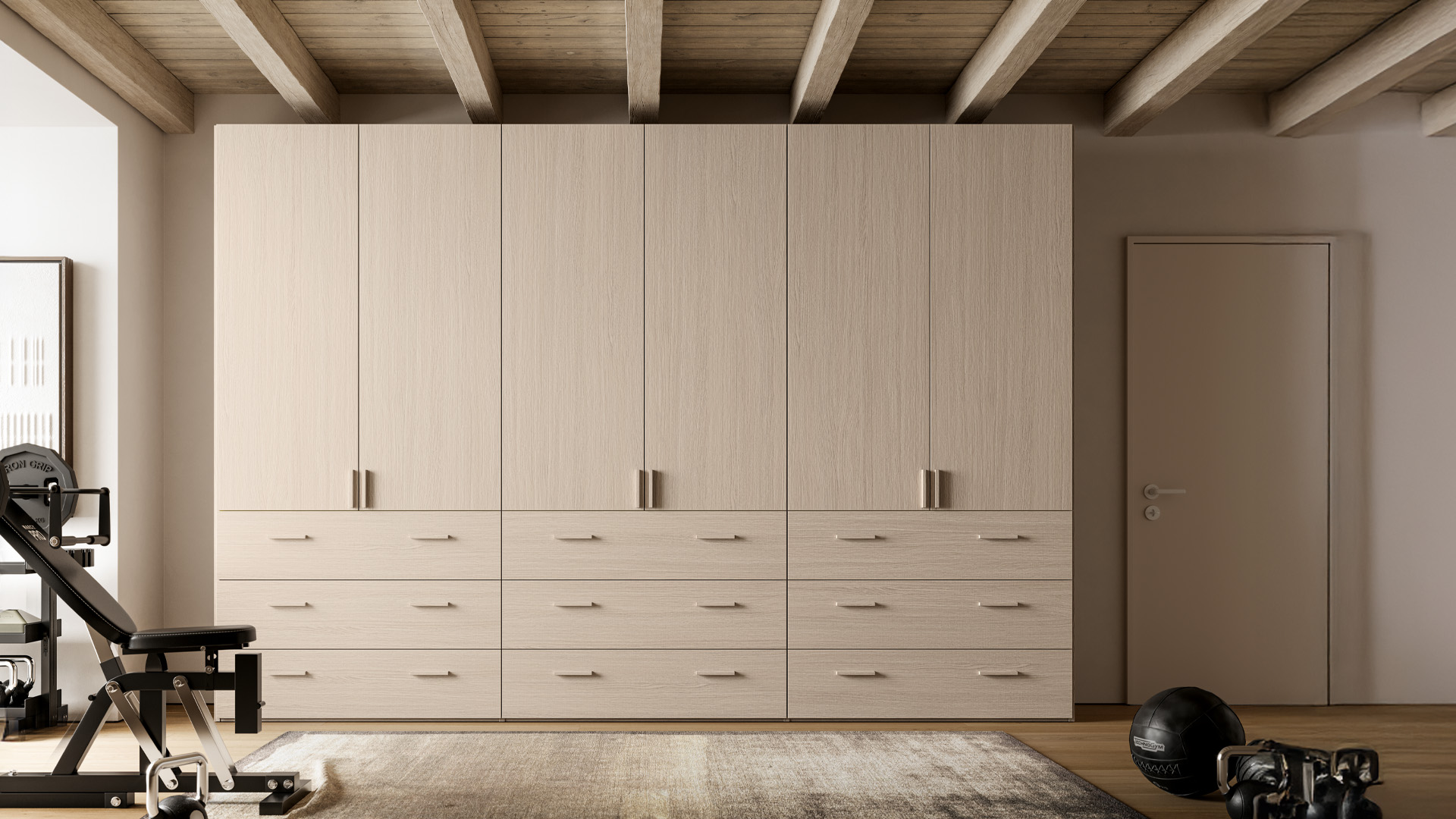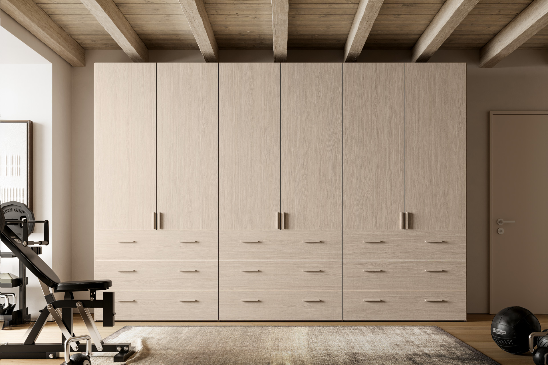 even beams or irregular ceilings. A functional and efficient made-to-measure composition