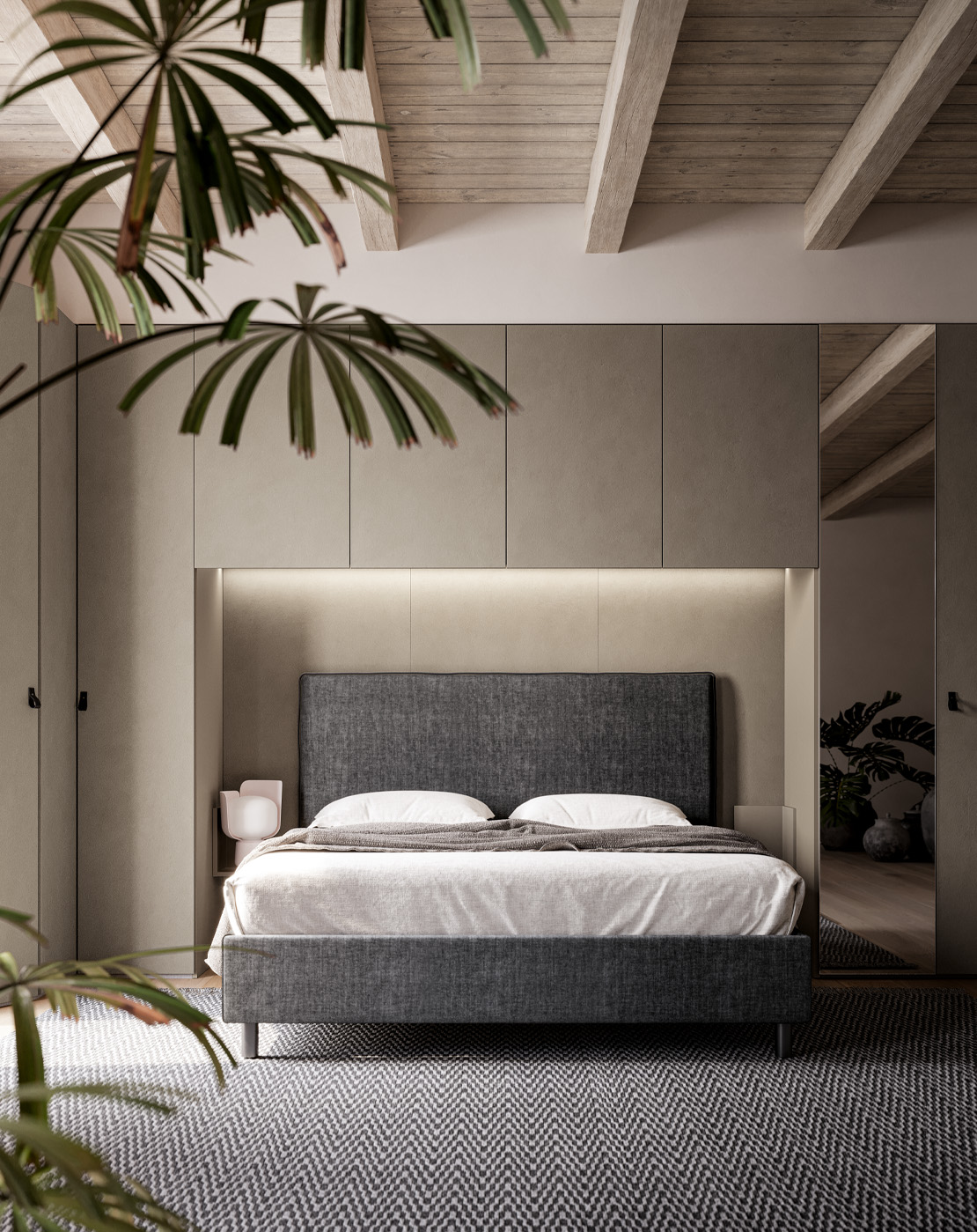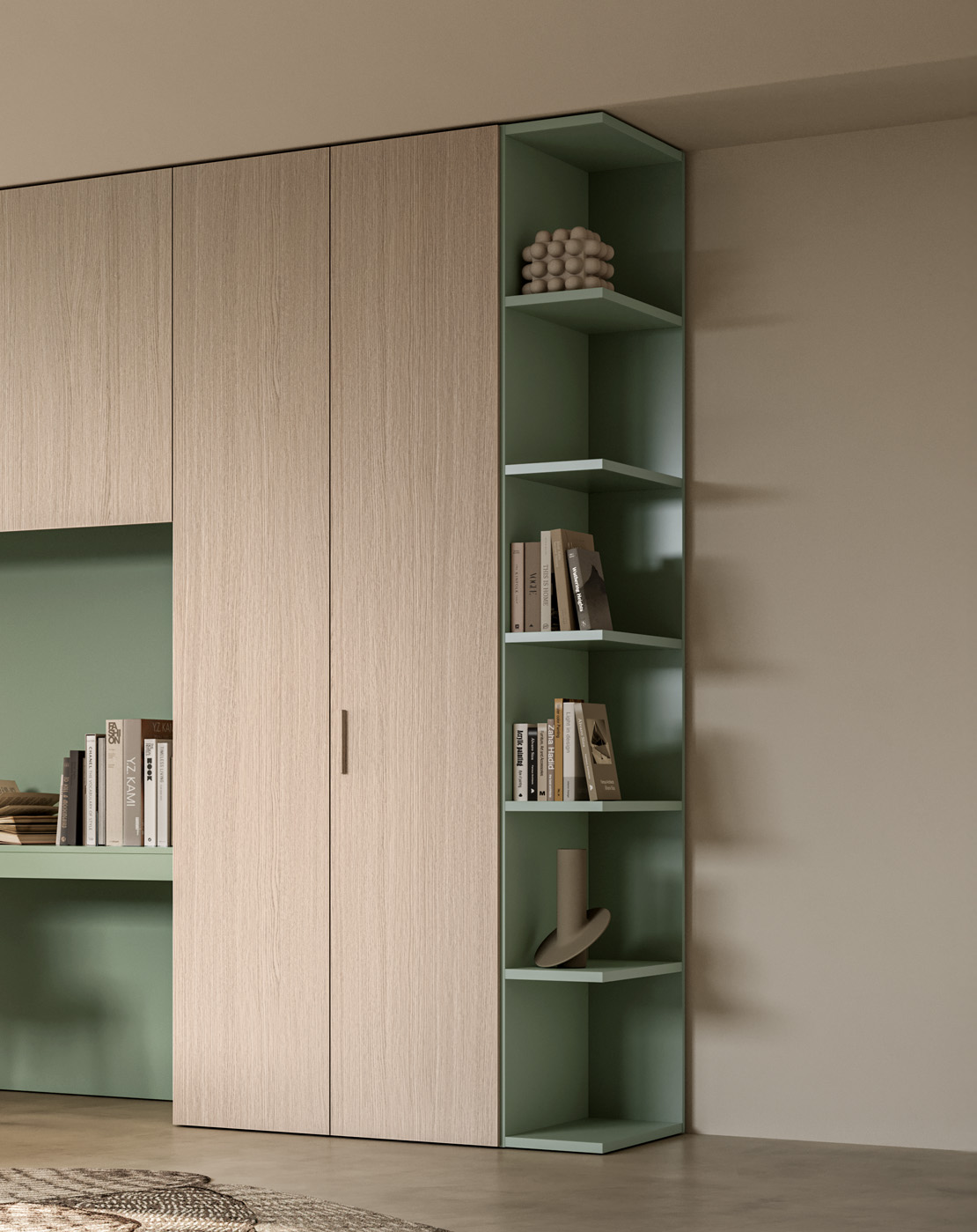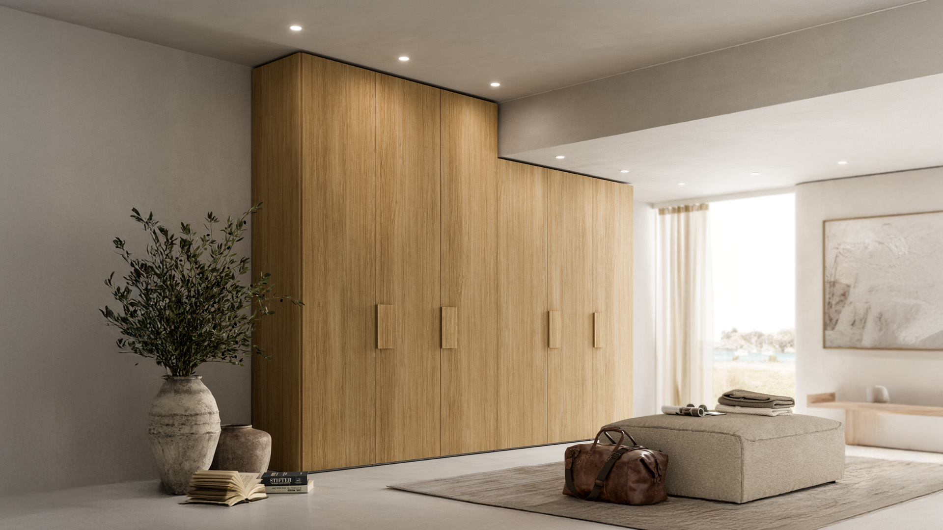 even beams or irregular ceilings. A functional and efficient made-to-measure composition