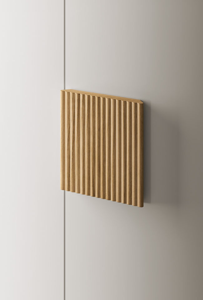 on the side of the wardrobe with visible shelving.